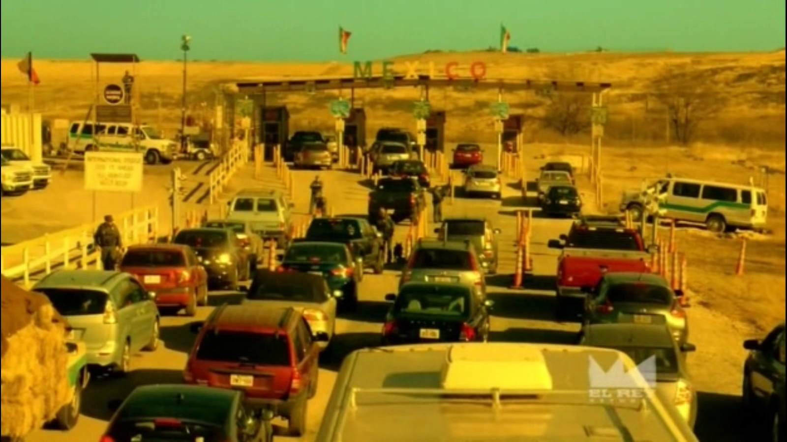 | The RV reaches the Mexico border, but must wait its turn in line to pass through border patrol. Richie fears the Fullers, as he believes Jacob is a demon. Jacob finally explains to his children about the car accident that killed their mother and caused him to lose faith in God. Meanwhile, Gonzalez escapes detention to arrive at the border, only to be held by Carlos, who has taken the form of the chief border agent and allows the RV to enter Mexico. The RV arrives at the Titty Twister bar. | |||||